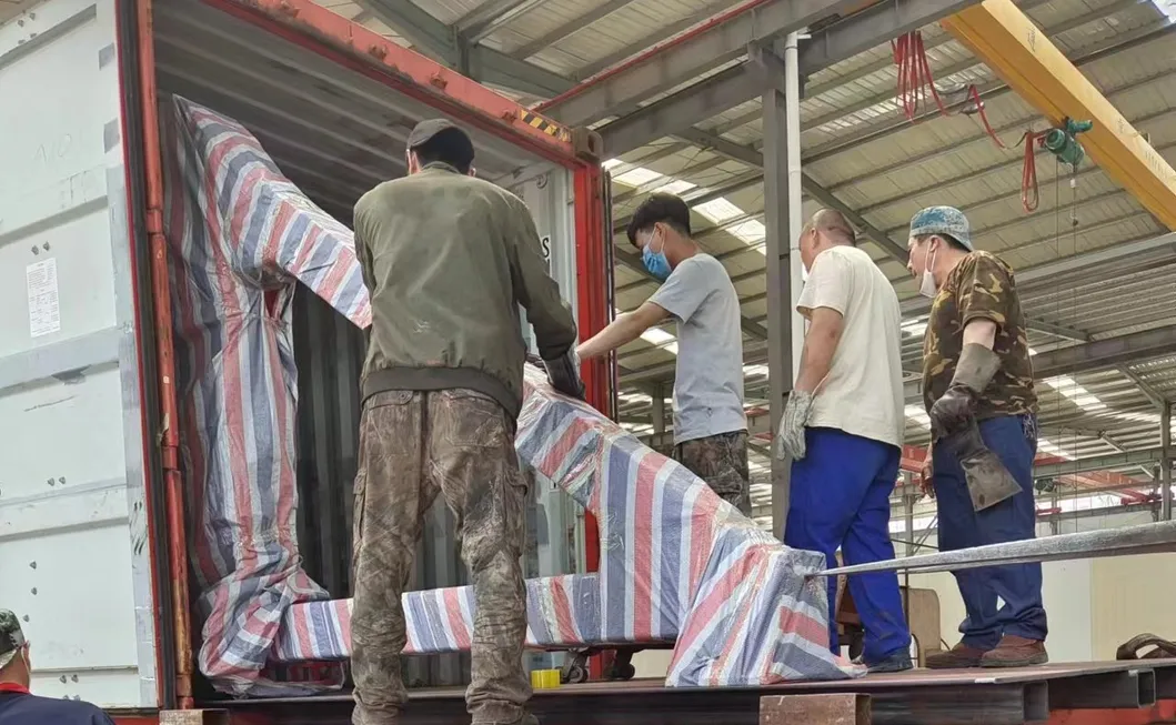 3. The container can be turned 90 degrees to stand up, filled with any bulk materials by the belt conveyor, can make the container 100% full, no waste of space, high filling rate.