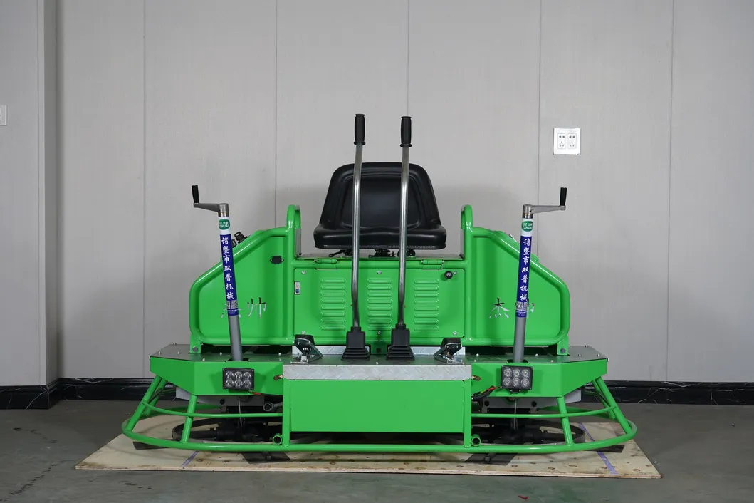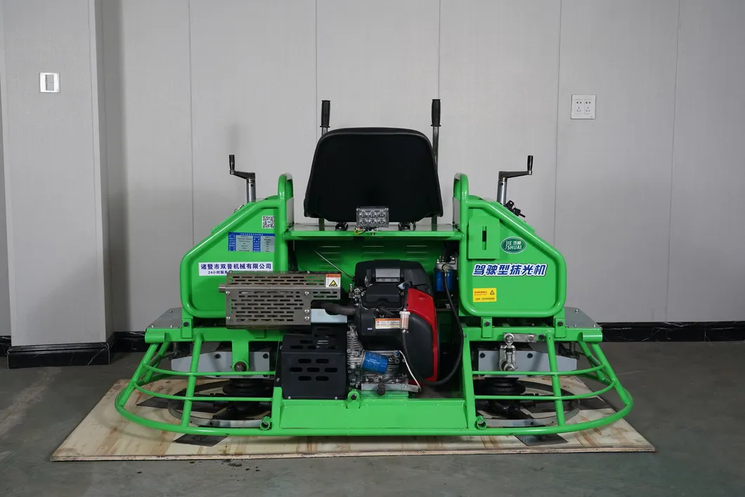 Introducing the magnificent JS 100-2A center control lever Ride-on Power Trowel, a groundbreaking solution tailored for extraordinary performance in lifting, compaction, and polishing of vast floor areas. This exceptional machine is perfect for a variety of environments including factories, warehouses, and public squares. The JS 100-2A is ingeniously crafted to significantly boost the efficiency and quality of concrete surface work. Its design features a low center of gravity, offering unbeatable stability and unparalleled user comfort. With a powerful high-rotation engine, it delivers robust performance, while the flexible control lever, available in both middle and side configurations, provides effortless operation customized to each user's preference.